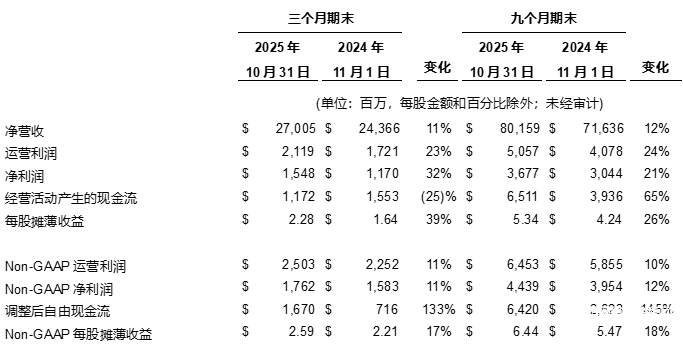 • 2026財年全年 GAAP 每股攤薄收益中間值預計為8.38美元,同比增長31%;non-GAAP 每股攤薄收益中間值預計為9.92美元,增長22%