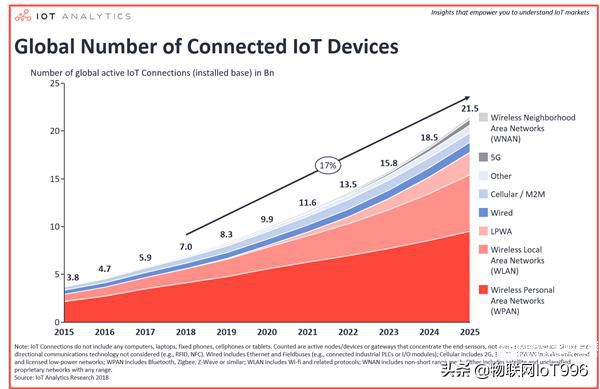 IDC還表示,從2017年到2025年,全球物聯網連接數量將以17%的復合年增長率(CAGR)從70億增長到250億。