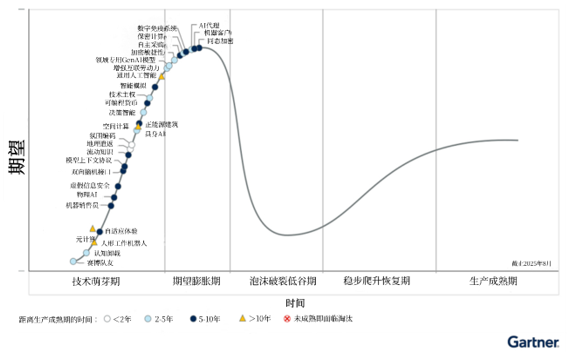 Gartner新興技術(shù)成熟度曲線在Gartner技術(shù)成熟度曲線體系中獨(dú)樹一幟,該研究從Gartner每年追蹤分析的2000余項(xiàng)技術(shù)及應(yīng)用框架中提煉核心洞察,簡(jiǎn)化歸納出“必須知道”的新興技術(shù)。這些技術(shù)有望在未來2至10年內(nèi)帶來巨大的效益(見圖一)。