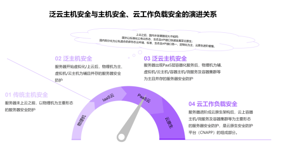 因此,安全牛將傳統主機安全和云工作負載安全分別對應“物理機”和“云原生”兩種基礎設施環境下的服務器安全防護體系建設,而泛主機安全和泛云主機安全則分別對應物理機(為主)——>云(為輔)、云(為主)——>云原生(為輔)迭代的階段性產物。