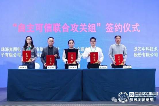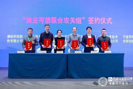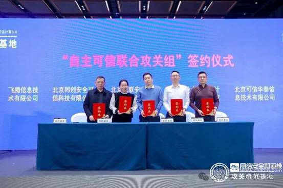 論壇現場舉行了“自主可信計算聯合攻關組”揭牌儀式,專家共同為“網絡安全等級保護2.0與可信計算3.0攻關示范基地”(簡稱“攻關示范基地”)揭幕,標志著產學研用協同創新機制正式啟動。隨后,攻關基地運營公司北京眾聯安全可信科技服務有限公司總經理王振宇與15家企事業單位代表簽署《自主可信計算聯合攻關組合作協議》,成員涵蓋高校、科研機構、龍頭企業及專精特新企業,將聚焦芯片、操作系統、工業控制等關鍵領域,開展技術攻關與成果轉化。