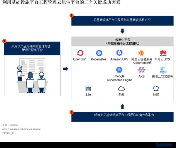 圖1:利用基礎設施平臺工程管理云原生平臺的三個關鍵成功因素